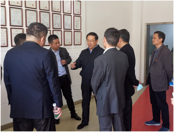 4月13日下午,省經信廳黨組書記、廳長牛弩韜、省經信廳中小企業局局長馬永、省經信廳科技處處長查漢斌、省經信廳節能與綜合利用處處長劉成全、省經信廳辦公室高源一行蒞臨安徽新境界調研指導工作,關心了解作為2月10日第一批復工企業復工后的運行情況。